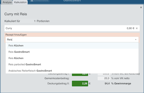 Standard-Komponenten geben Sie nur ein Mal ein: Verbinden Sie mehrere Rezepte (Komponenten) als Gericht.